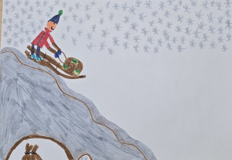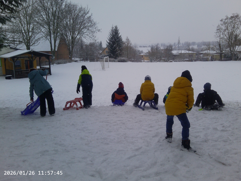 Marit aus der 1. Klasse hat sich heute sehr über den Schnee gefreut. Schnell haben wir unsere Schlitten raus geholt und ab ging es.